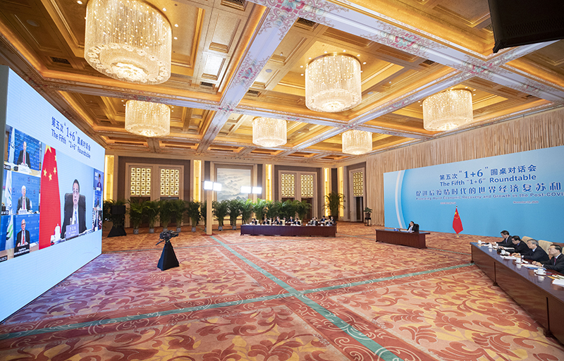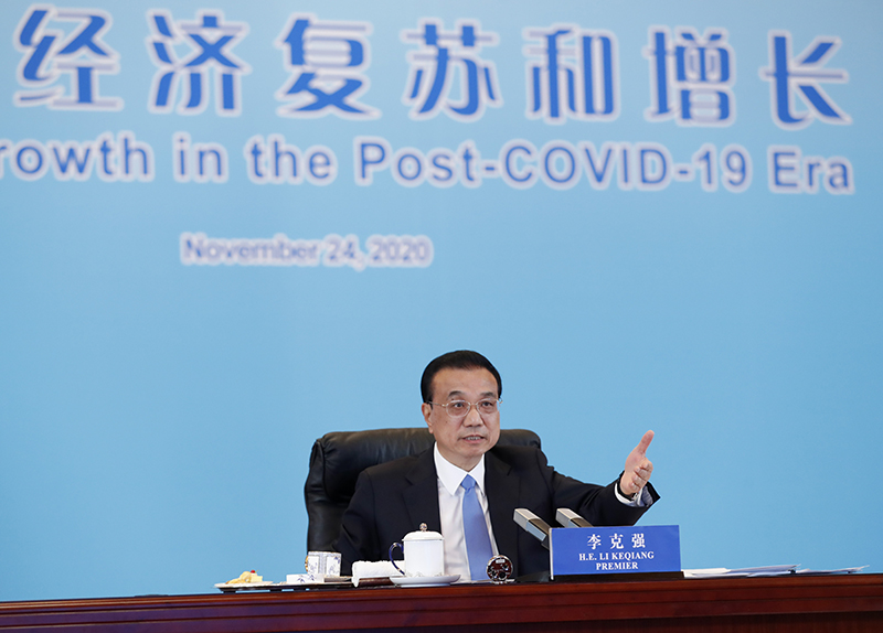 國(guó)務(wù)院總理李克強(qiáng)11月24日晚在釣魚(yú)臺(tái)國(guó)賓館同世界銀行行長(zhǎng)馬爾帕斯、國(guó)際貨幣基金組織總裁格奧爾基耶娃、世界貿(mào)易組織副總干事沃爾夫、國(guó)際勞工組織總干事萊德、經(jīng)濟(jì)合作與發(fā)展組織秘書(shū)長(zhǎng)古里亞和金融穩(wěn)定理事會(huì)主席夸爾斯舉行第五次“1+6”圓桌對(duì)話會(huì)。會(huì)議以視頻方式舉行,圍繞“促進(jìn)后疫情時(shí)代的世界經(jīng)濟(jì)復(fù)蘇和增長(zhǎng)”主題,就世界經(jīng)濟(jì)形勢(shì)、中國(guó)經(jīng)濟(jì)形勢(shì)以及后疫情全球經(jīng)濟(jì)治理等議題深入交流。