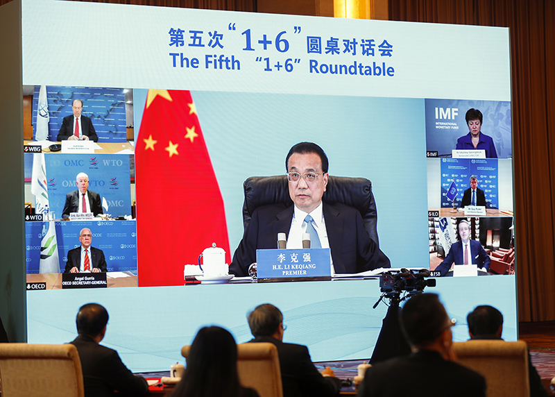 李克強(qiáng)同主要國(guó)際經(jīng)濟(jì)機(jī)構(gòu)負(fù)責(zé)人舉行第五次“1+6”圓桌對(duì)話會(huì)