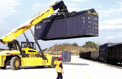圖為一臺吊運起重機(jī)在瑞金鐵路集裝箱貨場作業(yè)。該貨場已建成集裝箱作業(yè)堆場20900㎡,可容納堆放400個集裝箱,貨場設(shè)計年作業(yè)規(guī)模3萬標(biāo)箱、每日90標(biāo)箱,現(xiàn)階段業(yè)務(wù)范圍主要為本市及周邊縣(市)企業(yè)提供全國各地鐵路集裝箱到達(dá)和發(fā)送、裝卸、配送、倉儲、通關(guān)代理等一站式服務(wù)。記者周建云攝